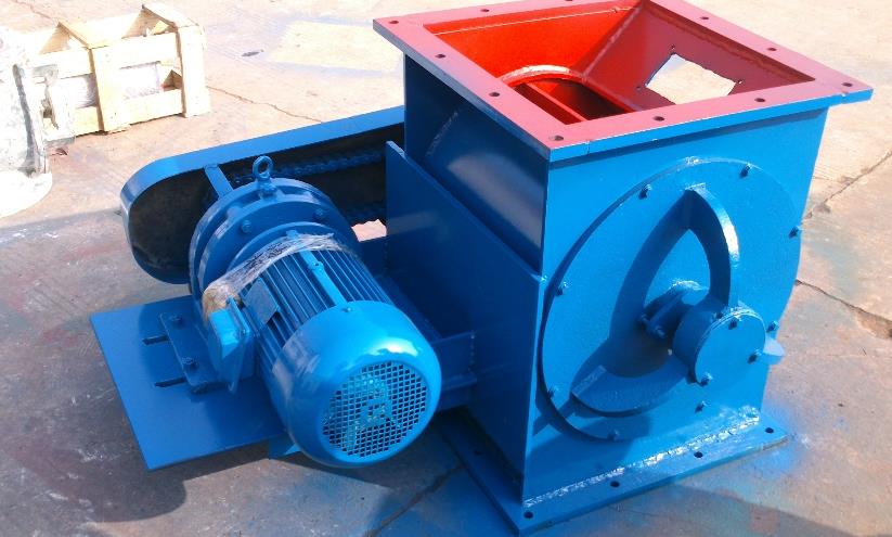 二、當上部料倉的物料靠自重落下充填在葉片之間的空隙中,隨葉片的旋轉而在下部卸出。因此,星型卸料器可以定量而連續地卸料。